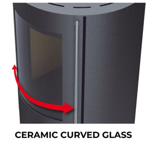 The Dover 9.4kw wood burning stove is a beautiful, free standing, modern cylindrical stove, with clean, sleek lines which gives a extra touch of European class to any room.