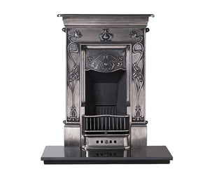 The Crocus is a stunning cast iron fireplace with an Art Nouveau design. Intricately detailed with a textured canopy and stemmed flower accents, it features a tall, narrow opening. Enjoy a 3-year guarantee for the combination fireplace and a 1-year guarantee for the ashpan.