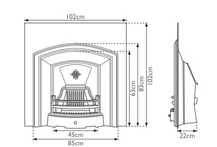 Experience the elegance and simplicity of the Early Victorian London Plate cast iron fireplace insert. This stunning piece features a wide half-arched opening that perfectly complements the arch's frame, creating a visually appealing look. With a 3 year guarantee on the insert and a 1 year guarantee on the ashpan and firebrick, you can trust in the quality and durability of this fireplace. Transform your home with the timeless beauty of the London Plate.