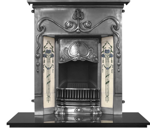 Experience the beauty and elegance of the Valentine Art Nouveau cast iron fireplace. Adorned with a symmetrical pomegranate design extending from the centre of the frieze to the framework legs, this fireplace is truly a work of art. Enhance the design with tile holders on either side and bring your space to life. With a 3 year guarantee for the fireplace and a 1 year guarantee for the ash pan and firebrick, trust in the quality and craftsmanship of this exquisite cast iron combination fireplace.