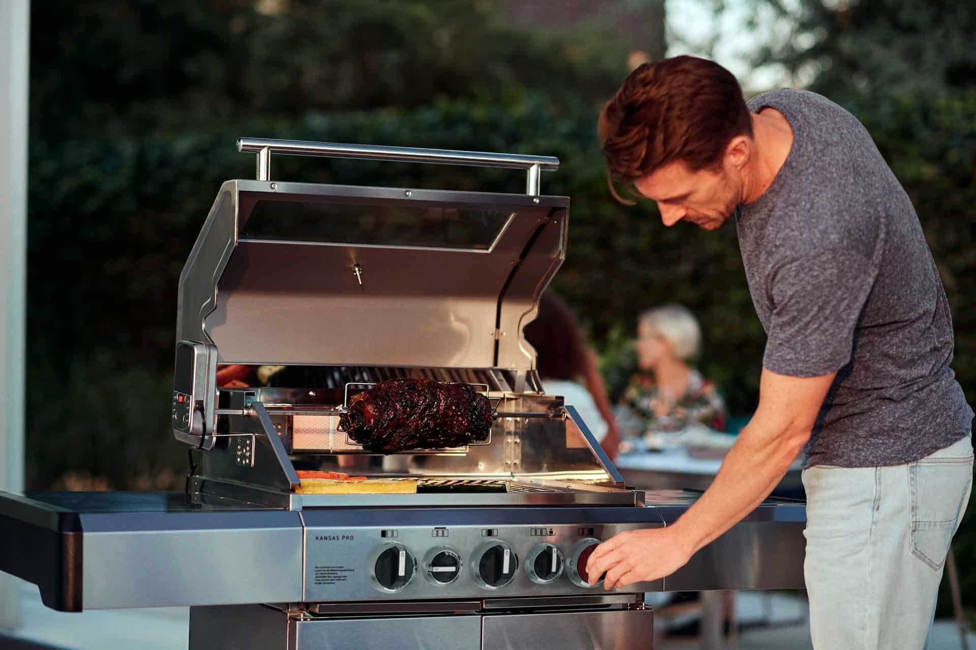 Under the hood, three powerful stainless steel burners are fitted, ideal for large scale grilling. WOW, your crowd with a selection of succulent bites from the Kansas Pro’s spacious cooking area. This barbecue’s great grilling precision courtesy of its Heat Range® burner architecture is also something to show off whilst it makes light work of maintaining searing as well as smoking heats.