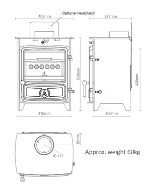 Stay warm with the SIA Ecodesign Ready 2022 certified stove. Enjoy ultra clean burning with its 5kW output and draught-controlled tertiary airwash system. The large ceramic glass window and external rotary grate riddling system deliver an impressive 81.7% wood and 79.5% smokeless fuel efficiency. Plus, this stove is DEFRA exempt, meaning it can be used in any location. It fits 5" Liners, requires only 50mm free air gap around the stove body, and 12mm thick superimposed hearth. It can accept logs up to 12" long.