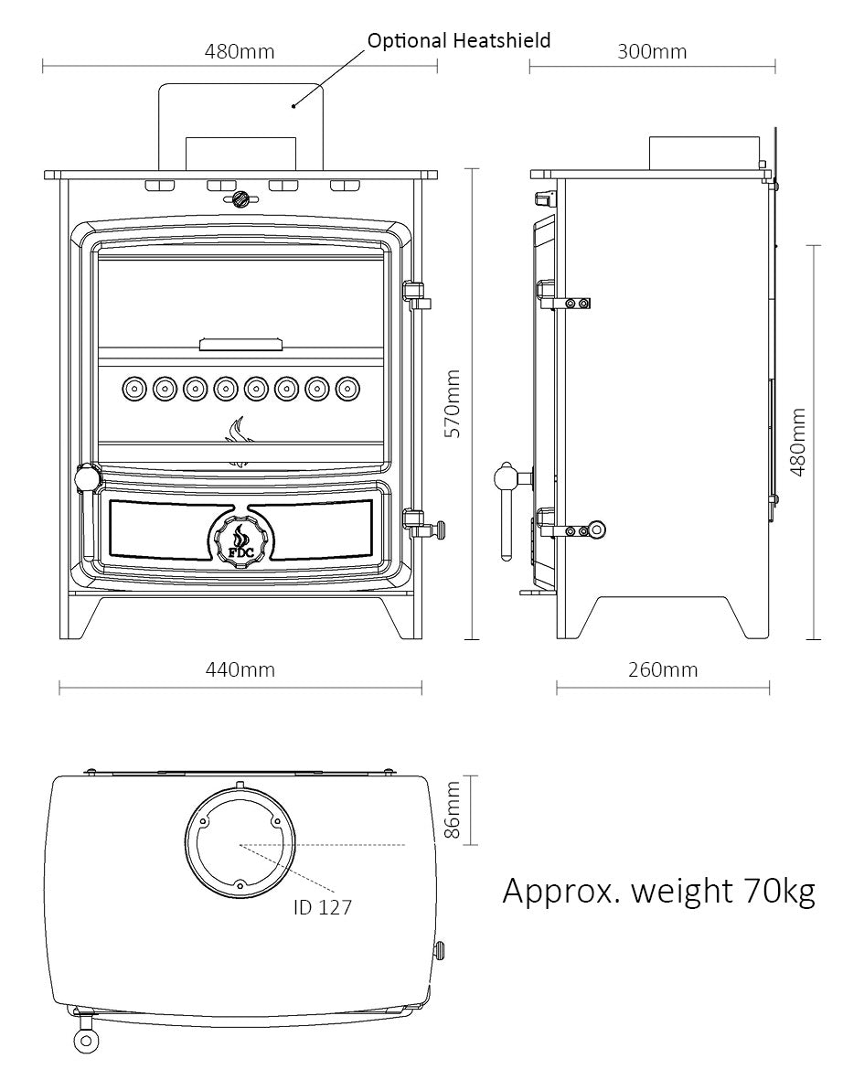 The FDC5W Eco Multifuel Stove is SIA Ecodesign Ready 2022 certified for ultra clean burning. It has an output of 5kW, a draught-controlled tertiary airwash system, and an extra large ceramic glass window. With an efficiency of 80.8% for wood and 81.6% for smokeless fuel, it is DEFRA exempt and only requires a 50mm free air gap around the body. Plus, it has an external rotary grate riddling system and accepts up to 15" logs.