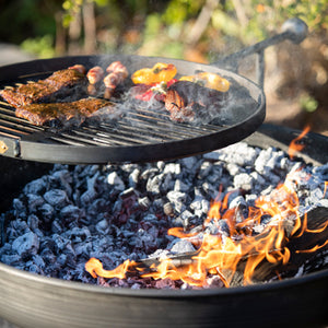 Our innovative ‘Swing Arm’ design, the Legs Eleven Fire Pit Collection serves as both a fire pit and a BBQ. The included BBQ Rack ensures a perfect cooking height and can be swung away from sudden flames. The Swing Arm can be easily removed, allowing the fire pit to provide warmth into the evening. Enhance your cooking experience with our Up-Down Swing Arm BBQ Rack, designed for maximum versatility and control. Check out our Accessories section for more useful extras, such as the Fire Pit BBQ Gloves and Ash Rake. Personalize your fire pit with a customized brass plaque to make it unique and special. Please note, all our fire pits and accessories will develop a natural rust finish, but this will not affect their durability. As each item is handmade, there may be slight variations in appearance. For safety and care tips, please click here.
