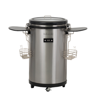 Bring life to your gatherings with our Lifestyle Outdoor Electric Drinks Cooler. Providing authenticity and honesty, this 50L cooler is the perfect solution for diverse tastes and preferences. With its divided interior and snack baskets, you can easily keep everyone's favorites organized. The two side shelves and two-meter long 3-pin power cable add convenience and functionality to your gatherings. Make unforgettable memories filled with love and togetherness with our cooler. 50L storage, divided interior, snack baskets, wheels, 2-meter power cable included.