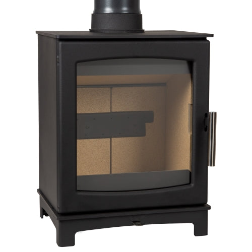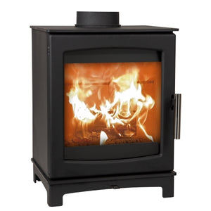 Wood burning stove, 5kW - EcoDesign 2022, Smoke Control Area Exempt, 85.1% Efficient, A+ Energy Rating, 13% Dust. Designed and assembled in the UK, these stoves are the most efficient of their size in the UK, together with the lowest emissions (Dust Particles) available today.
