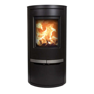 The contemporary and stylish ovale range. A tall, slender and elegant wood burning stove with an elevated combustion chamber and ergonomically integrated stainless steel handles.