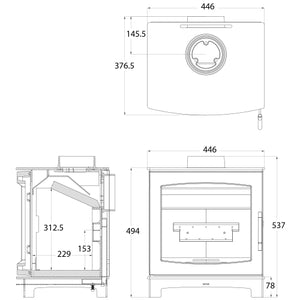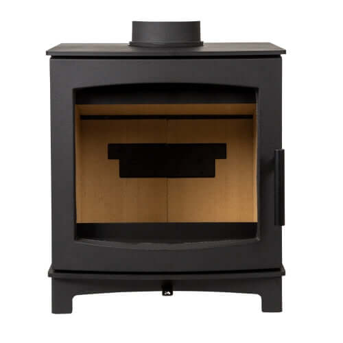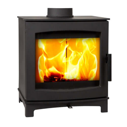 Wood burning stove, 5kW - ECODesign 2022, Smoke Control Area Exempt, 85.1% Efficient, A+ Energy Rating, 13% Dust. Designed and assembled in the UK, these stoves are the most efficient of their size in the UK, together with the lowest emissions (Dust Particles) available today.