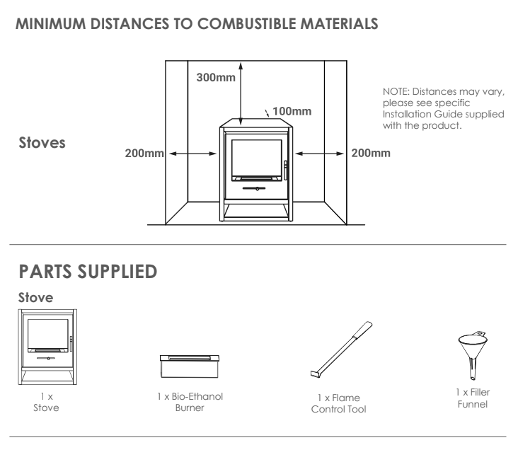 Standard: Tested to BS EN 16647:2015 - Fireplaces for liquid fuels. Decorative appliances producing a flame using alcohol based or gelatinous fuel. Use in private households.