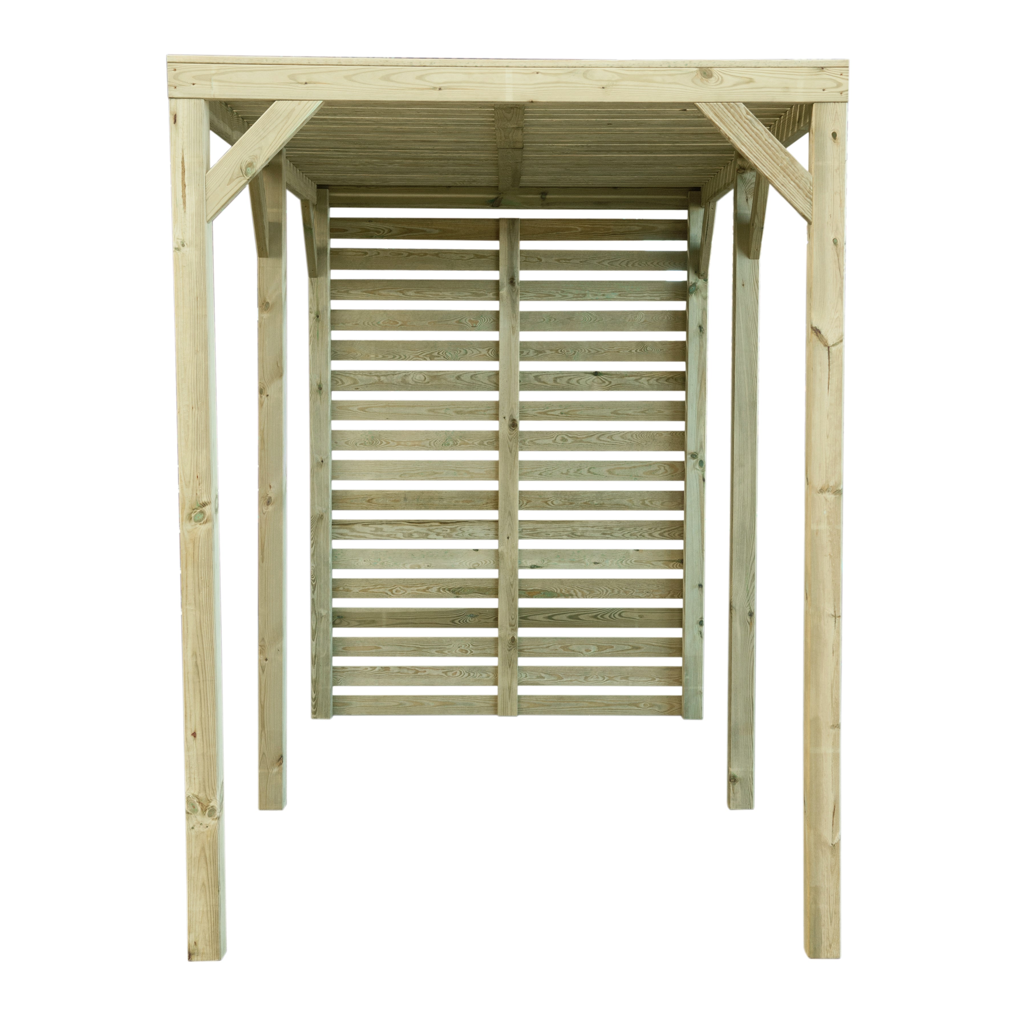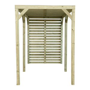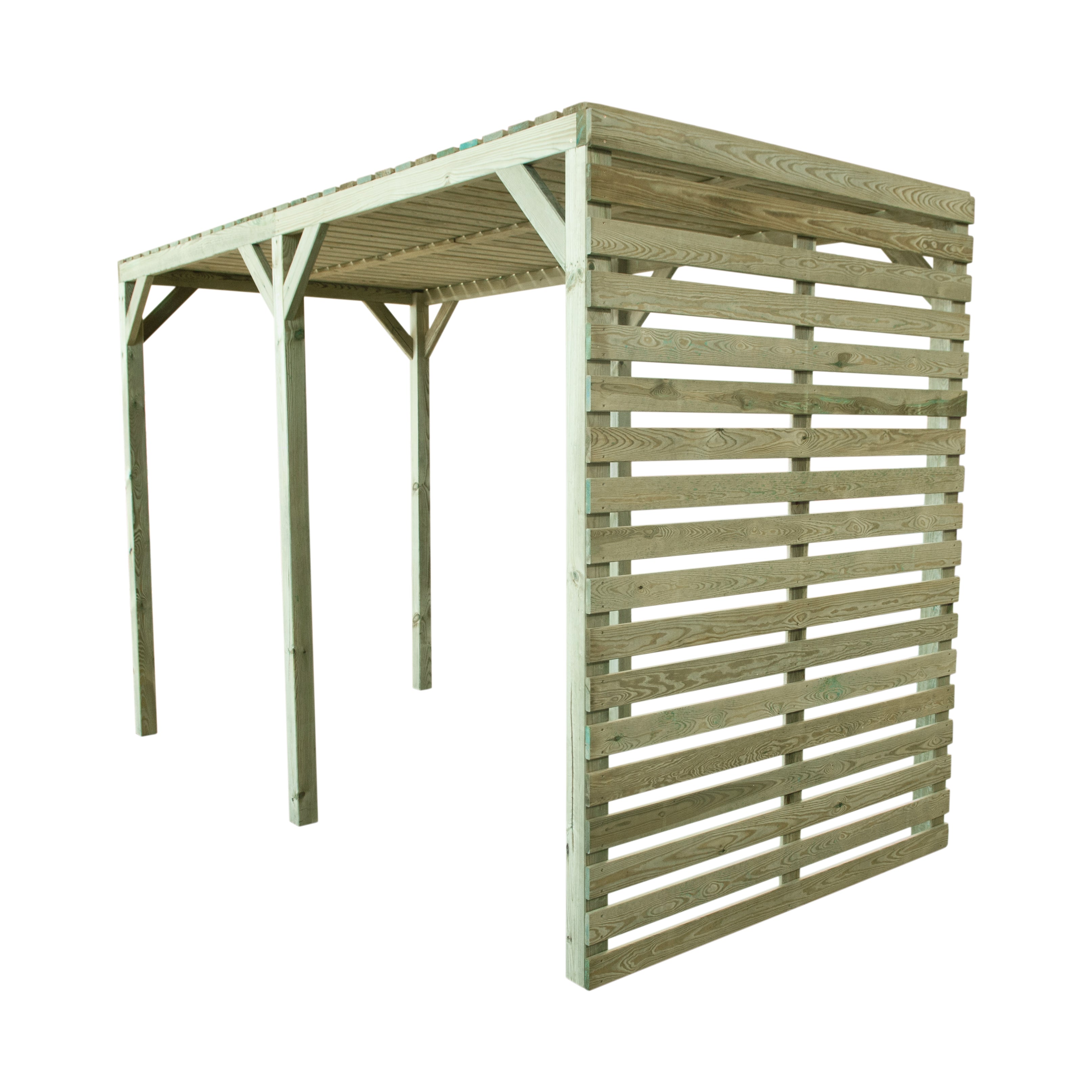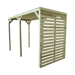 A modern styled pergola is great for dining and entertaining, the back screen is ideal for hanging plants or providing protection from the wind.